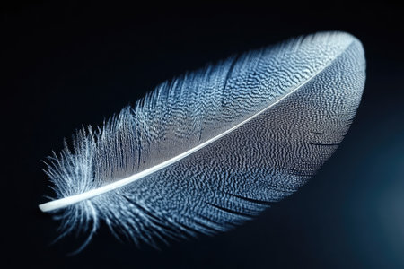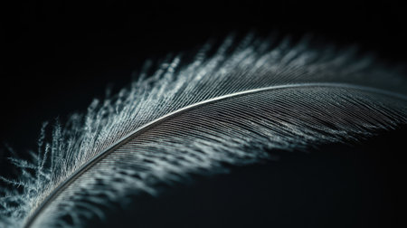 Explore the elegant beauty of a soft feather displayed against a black background. This close-up captures the intricate details and textures, embodying serenity.