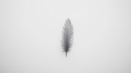 A minimalistic image of a single feather placed delicately on a white background.