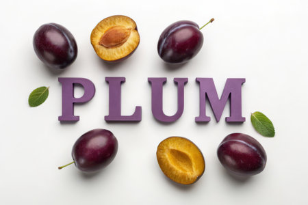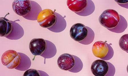 Close-Up View Of Plum Colorful Freshness Scattered. (View From Above)
