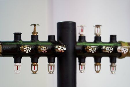 Automatic fire extinguishing system manufacture concept. Fire Sprinkler system, close-up