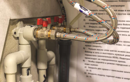 Water heater boiler equipment and valves closeup view for repairing and fixing the pipeline