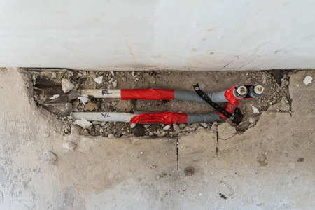 Plumbing pipes top view. Plumbing work background