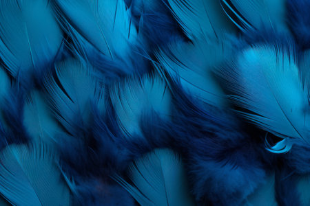 Close up of delicate ethereal blue feathers texture with softness and intricate detail, creating a vibrant and artistic background