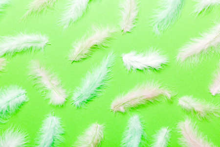 Beautiful abstract white and green feathers on dark background and soft white feather texture on white pattern and green background, feather background , green banners