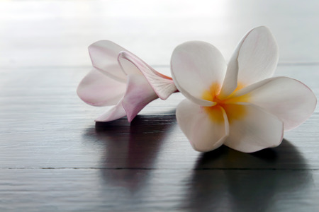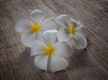 Plumeria flowers on the old wood floor.