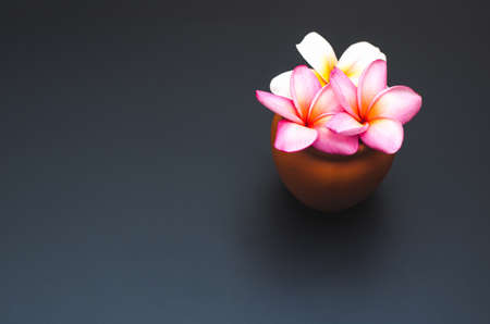 plumeria flower in vase on black board decoration.