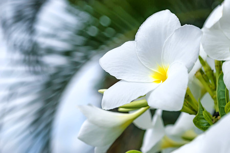 Plumeria white with blur on natural background