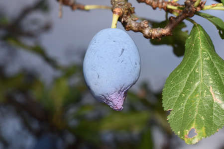 Blue plum fruits. Ripe Plums Background - close-up. Selective focus.