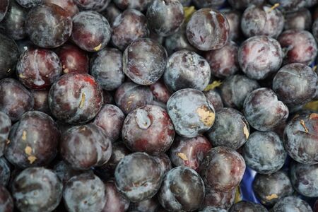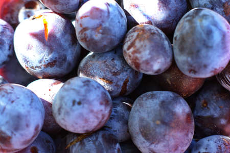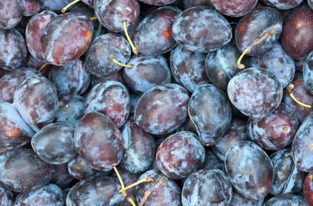 Ripe blue plum fruits harvested in fall as nackground texture