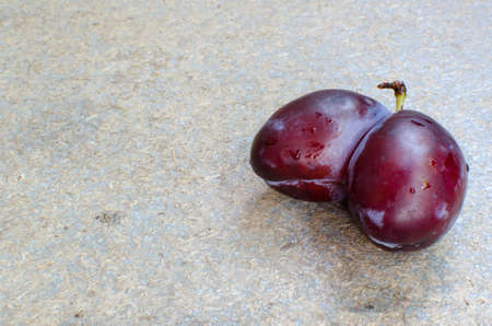 Close up of one plum fruit with copy space