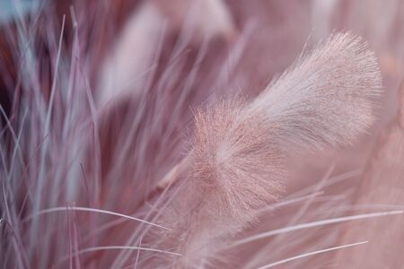 A close-up view of ethereal pink pampas grass showcases its feathery plumes, illuminated by a dreamy, diffused light. This serene composition evokes feelings of tranquility and natural beauty, inviting viewers to appreciate the elegance of natures artistry.