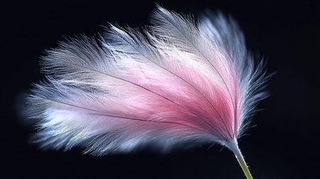 A close-up of soft pink feathers, elegantly arranged and illuminated by a soothing light. The image captures the ethereal beauty and delicate texture of the feathers, evoking a sense of tranquility and grace.