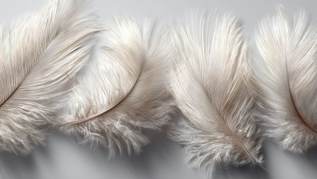 This image features a delicate soft feather against a light blue background. The ethereal feel and fine details evoke calmness and elegance, perfect for nature and texture themes.