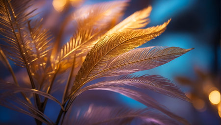 Closeup of golden and purple tropical foliage creates a stunning background, perfect for artistic and design inspiration with its lush and vibrant qualities