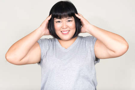 black and white picture style for Close-up of fat woman on white . Concept for obesity issue, diet of food for health.