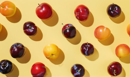 Close-Up View Of Plum Colorful Freshness Scattered. (View From Above)
