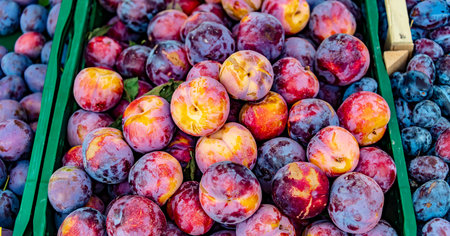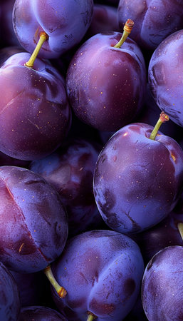 Vibrant display of fresh, ripe blue plums fruits for a colorful and appetizing background