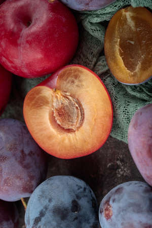 ripe plum with top view.new agricultural crop