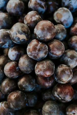 Background of luscious ripe blue plums, perfect for fruit lovers and food enthusiasts