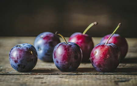 Organic food. True GMO-free, organic plum on the wood table