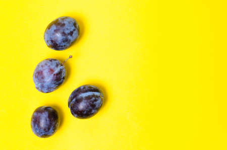 Ripe plum on a yellow background close-up.Fruits and vitamins.