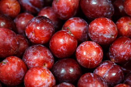 fresh ripe red plums fruit background