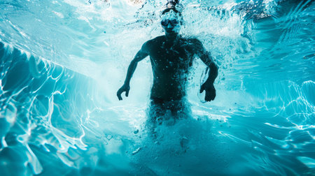 Man Swimming in Pool, Underwater