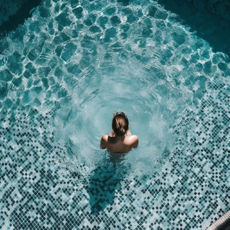 Man swimming in a pool top view, created with Generative AI technology