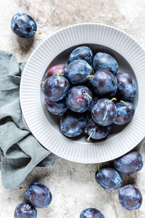 Damson Plum in a bowl. Organic Food Concept.