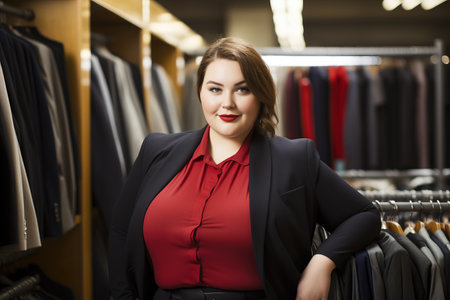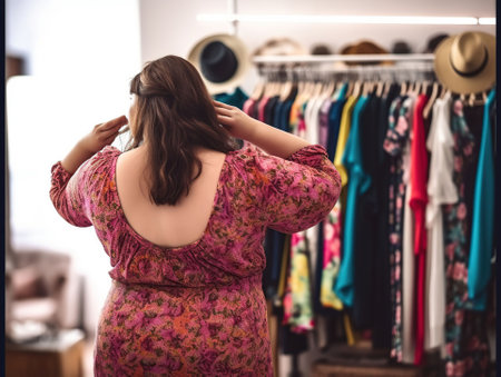 Beautiful overweight woman shopping in boutique, AI Generative
