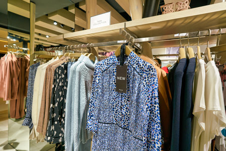 HONG KONG, CHINA - JANUARY 23, 2019: clothes on display at Reiss store in New Town Plaza. New Town Plaza is a shopping mall in the town centre of Sha Tin, Hong Kong.