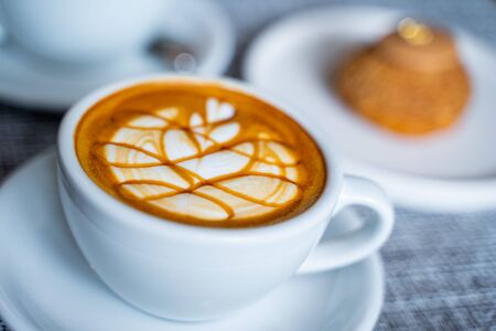 Hot latte coffee with latte art in a cup