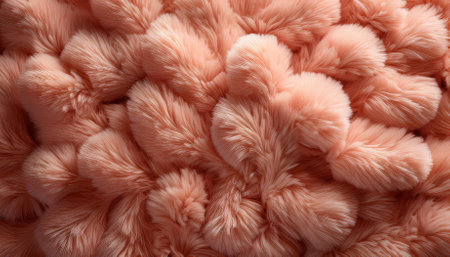A close-up view of a luxurious pink faux fur fabric showcases its plush, inviting texture, creating a sense of warmth and comfort. The gentle waves and soft fibers evoke feelings of coziness, making it perfect for home decor or fashion accessories.
