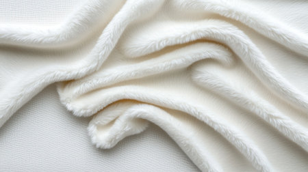 White plush fabric with intricate textures, offering a soft and comforting background for elegant designs.