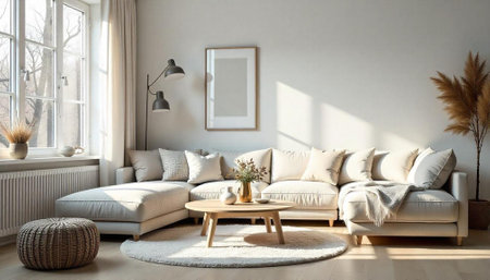 modern bright interiors apartment Living room mockup illustration 3D rendering computer generated image