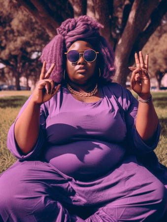 Celebrating Diversity: Happy Plus-Size Lady in Fashion Sunglasses