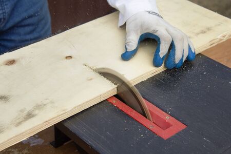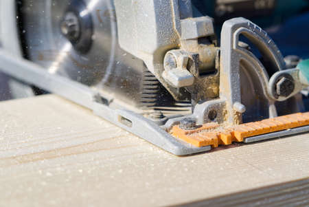 Sawing plywood by circular saw.