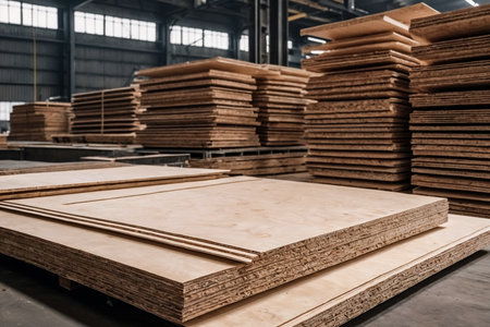 Oriented Strand Board (OSB) Panels in a Wood Processing Factory
