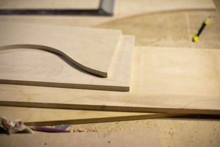 Wood material for the production of furniture in the workshop. Plywood