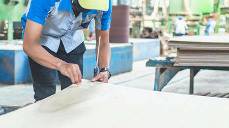A worker doing final quality inspection at plywood manufacture factory