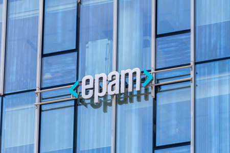Gdansk, Poland - May 8, 2022: Logo of EPAM Systems, Inc. is an American company that specializes in service development, digital platform engineering, and digital product design.