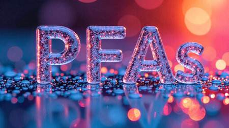 3D illustration of the word PFAS written in ice with bokeh background