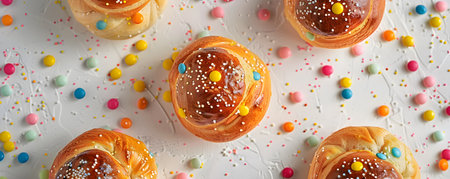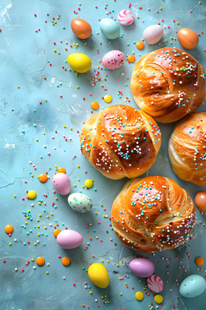 round fragrant Easter bun with colored sprinkles