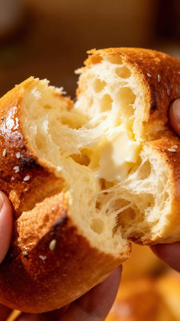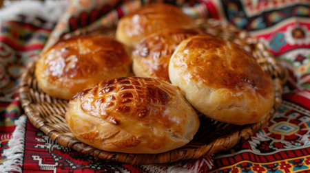Freshly baked golden rolls with sesame seeds, perfect for a delicious meal or snack. Soft and flaky texture, mouthwatering aroma.