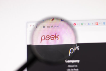 Los Angeles, USA - 1 February 2021: Peak games website page. Peak.com on display screen, Illustrative Editorial
