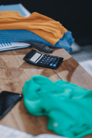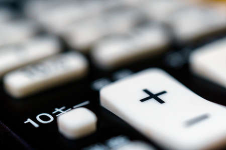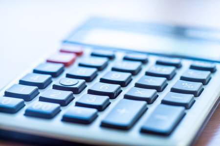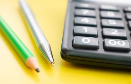 Modern calculator, Business and Finance accounting concept on yellow background with space for text.