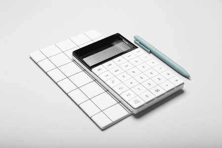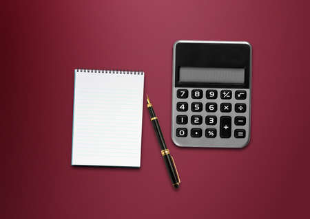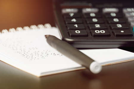 calculator on a notepad with numbers and a pen. business accounting and finance concept.