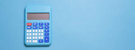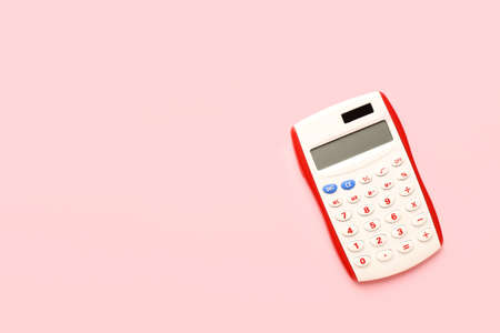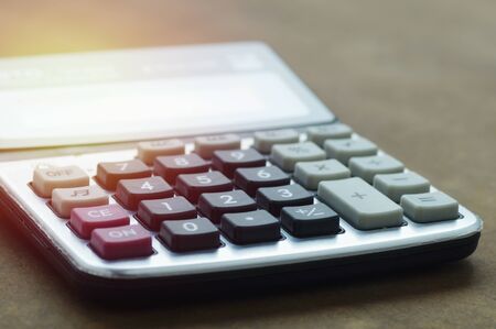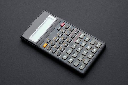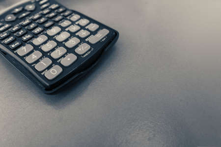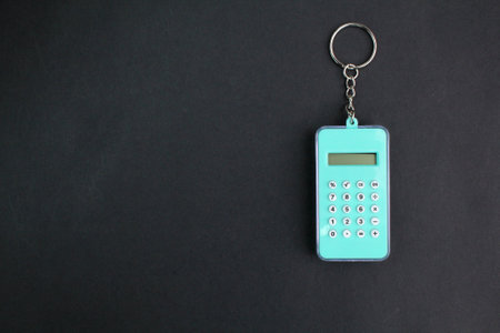 a small calculator with a dark background and copy space on the side. the concept of calculation or accountant