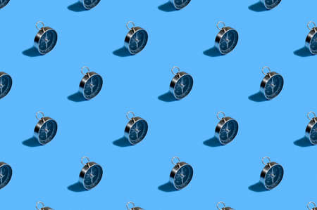 Pattern of compass. Trendy background of compass on a blue background. Colorful pattern. View from above