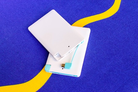 power bank small, mini size on blue background